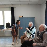 Publiée le 24/09/2025Vendredi 19 septembre, nous avons accueilli Roxane, animatrice théâtrale, pour le plus grand plaisir des résidents. Quelques timidités en début de séance qui ont vite laissé place à des éclats de rire ! Cet atelier se déroulera [...] Lire la suite